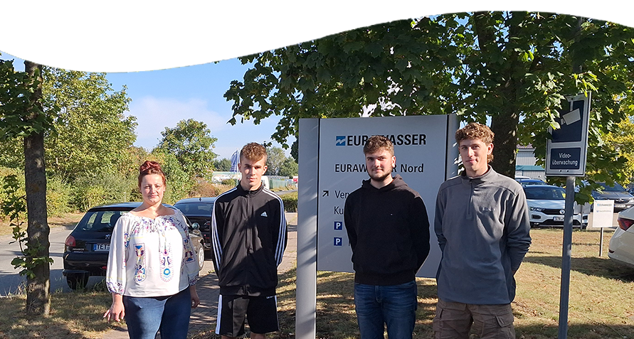 Unsere Personalreferentin Sandra Lang mit den Azubis Justin Liebeskind, Moritz Bode und Moritz Paul Gerotzky (01.09.2024) (v. l. n. r.)